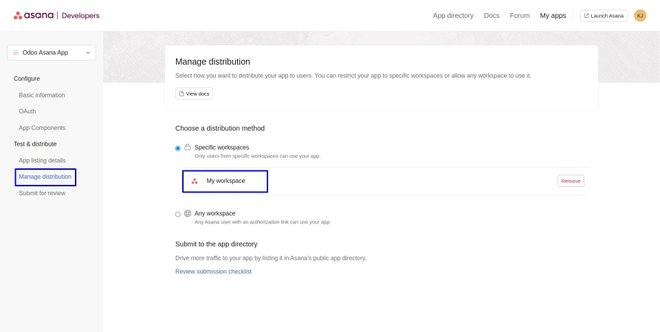 Click on Manage Distribution and add your workspace under Specific Workspaces.