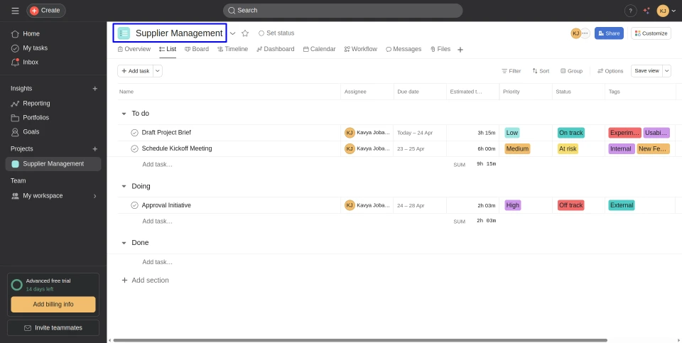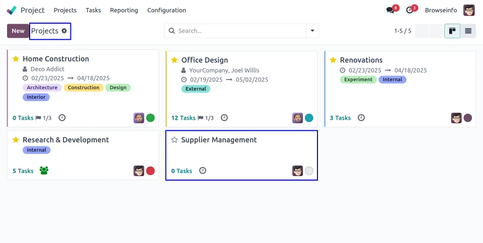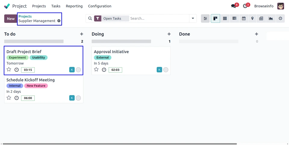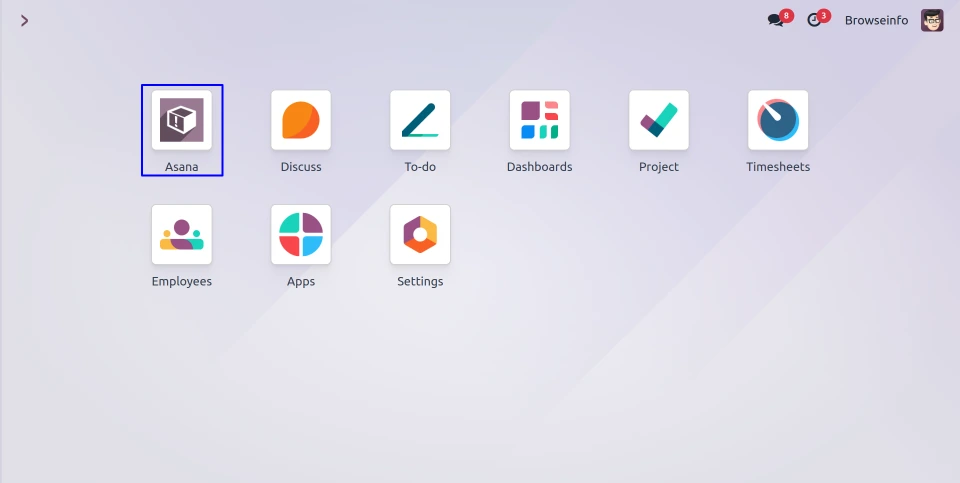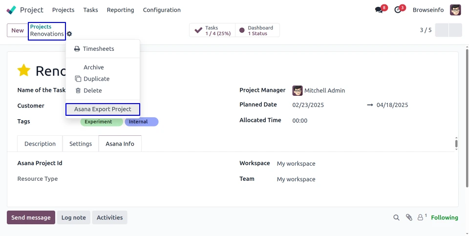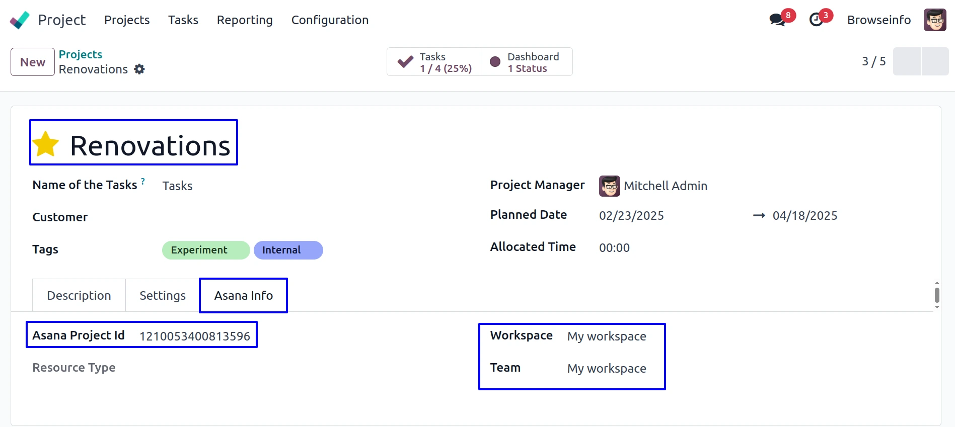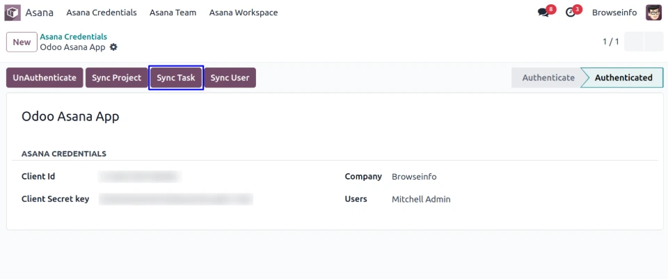 User can view the synced tasks and tags from the project synced from Asana to Odoo.