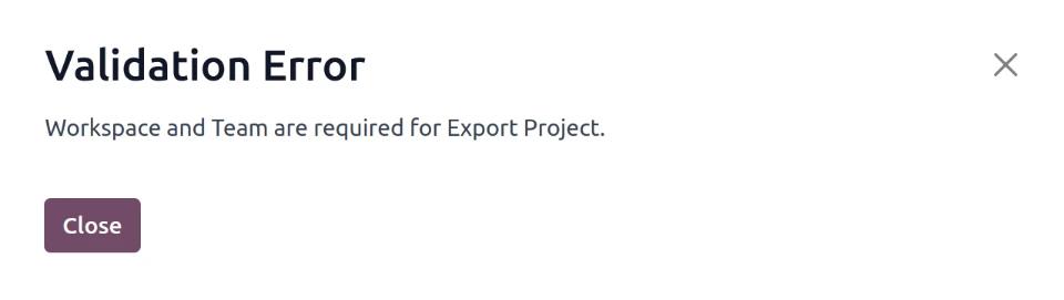 If user does not define workspace and team in the project, validation error occurs while exporting project.