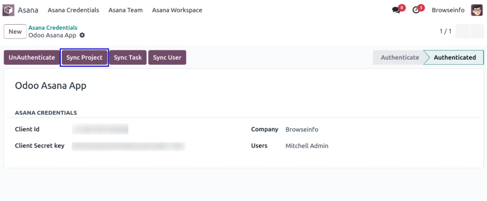 User need to click on "Sync Project" button to sync projects from Asana to Odoo.