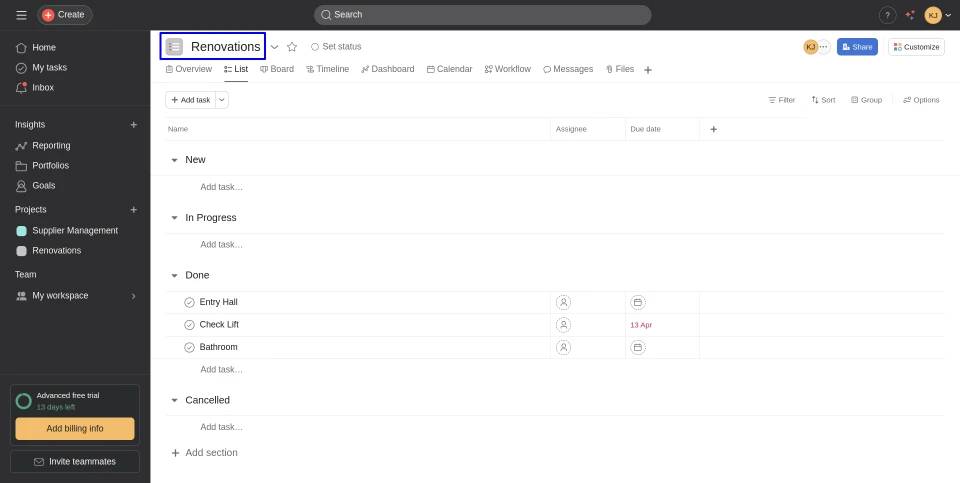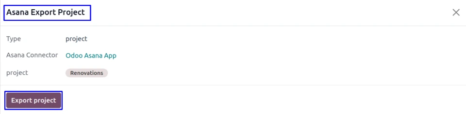 User can export projects from the project module by selecting a project and clicking the "Asana Export Project" button.