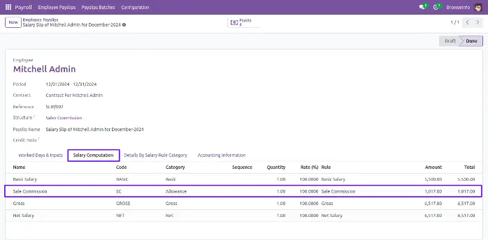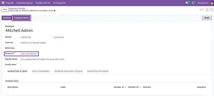 Upon installation, the Odoo app automates the generation of salary structures and rules for sales commissions, ensuring accuracy and efficiency.