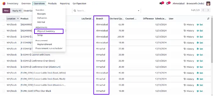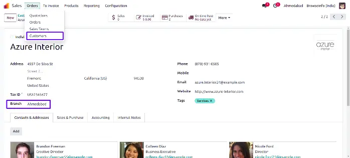 Branch Manager can create multiple branch under Settings > Users & Companies > Branch menu, User also can set branch details like address, phone, company.