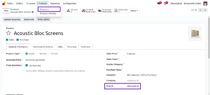 User can set branch on product template, selected branch on product template will automatically added to product variant.