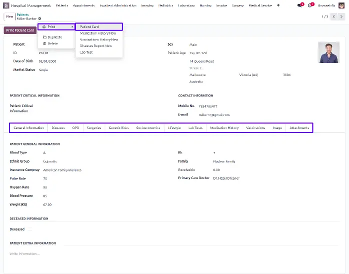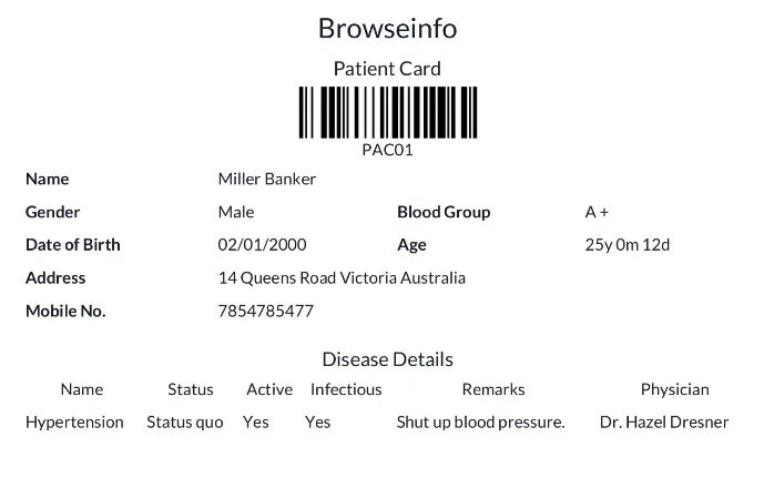 By clicking on the "PRINT PATIENT CARD" button user can print a patient card PDF report.
