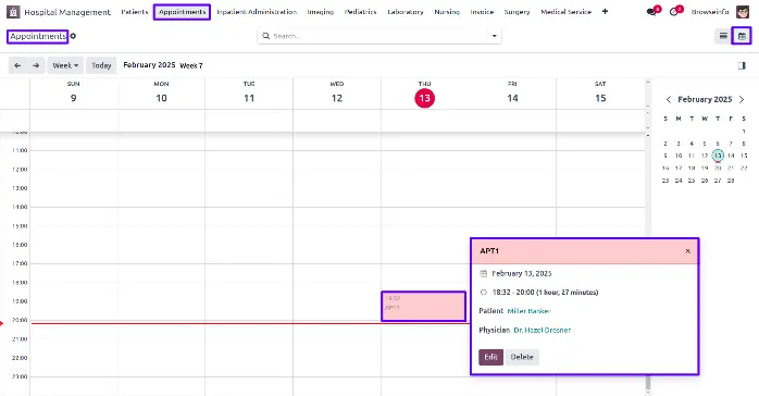 In Hospital Management > Appointments menu the user can create a new appointment, view and manage an appointment.