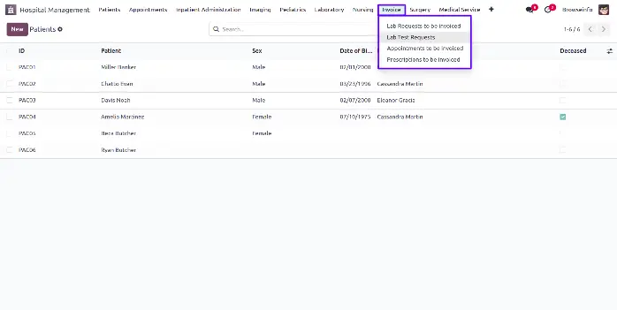 User can create and manage invoices for all services like lab request, lab test, appointment, and prescription.