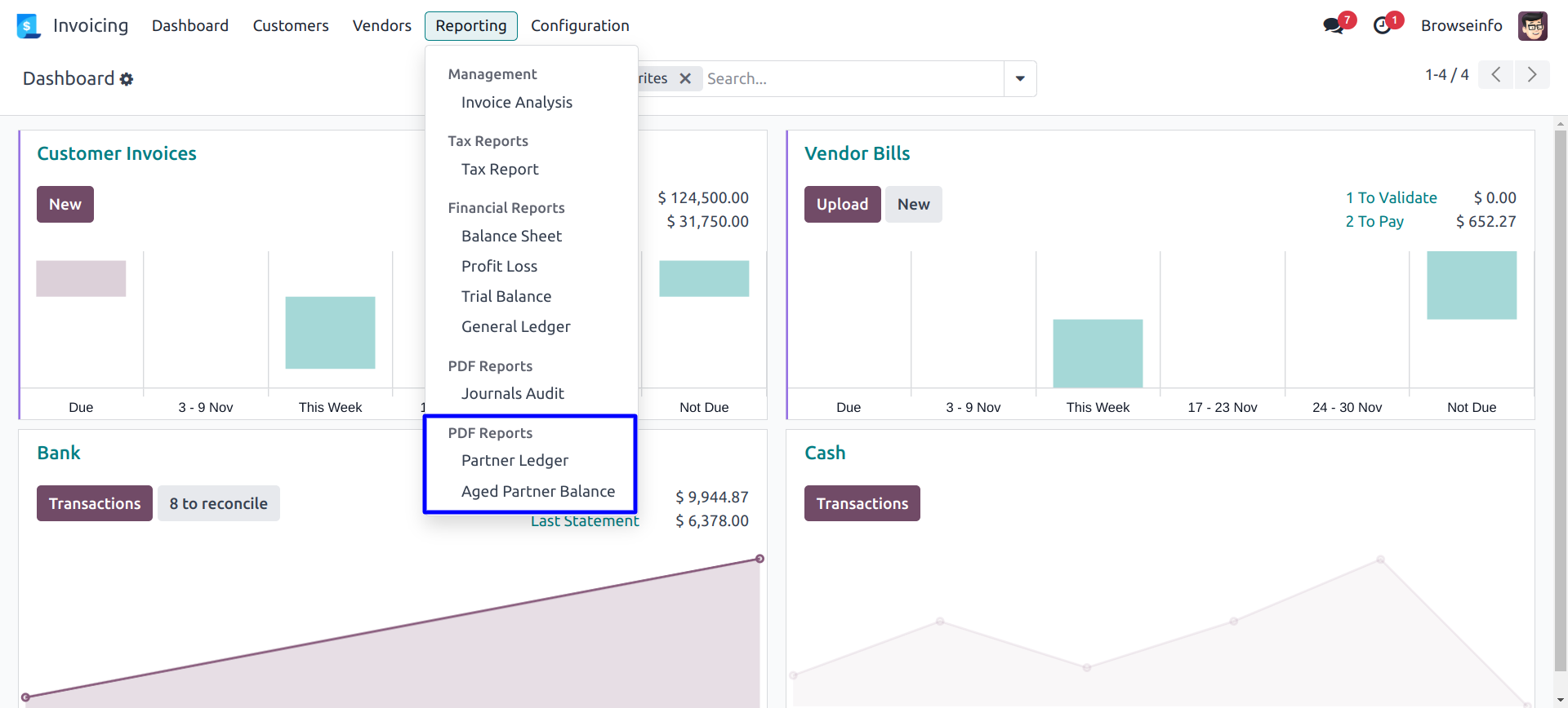Print Aged Partner Report and Partner Ledger Report in PDF and Excel format.
