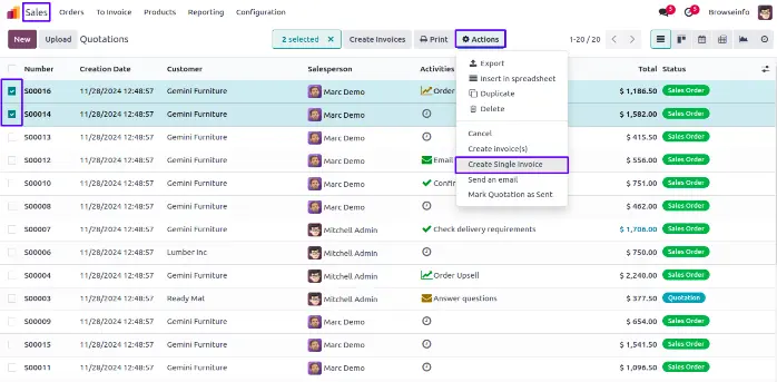 - Single Invoice from Multiple Sales Orders: Similarly, the app enables the creation of a single invoice from multiple sales orders, simplifying the invoicing workflow.