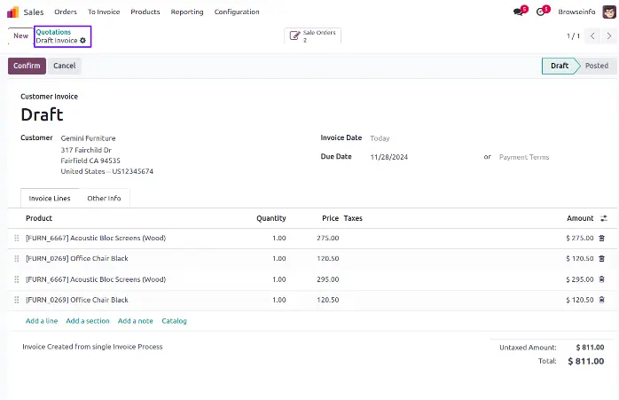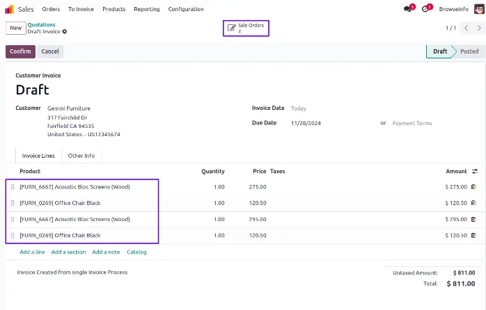 Key Features Of Single Invoice From Multiple Sales and Purchase Orders Odoo Apps