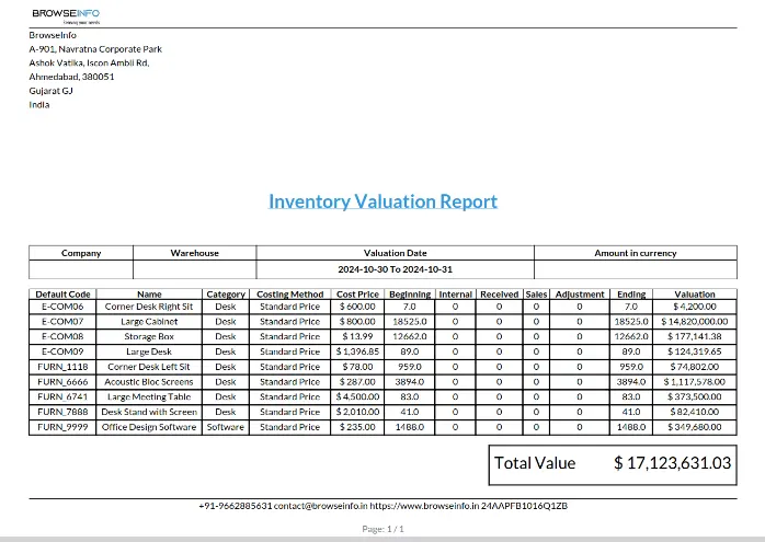 Report for stock valuation inventory,detail with and without product, stock valuation with summarized data.