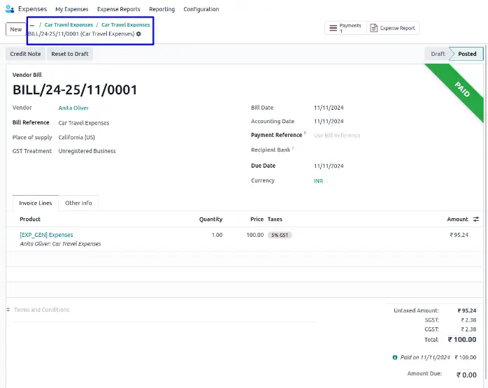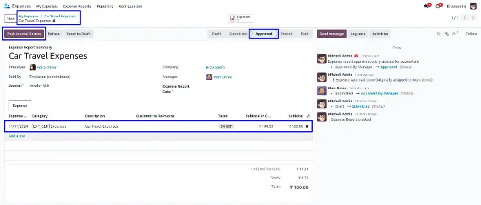 Expense Manager Approved Request than going to Approved stage and click on post journal entry.