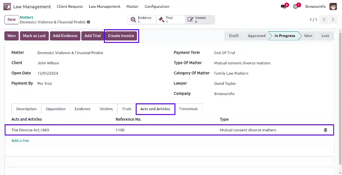 Embrace the future of legal management with Odoo, where the Law & Legal Practice Management System takes center stage. This app is not just a tool; it's a comprehensive ecosystem that empowers legal professionals to manage every facet of their practice seamlessly.