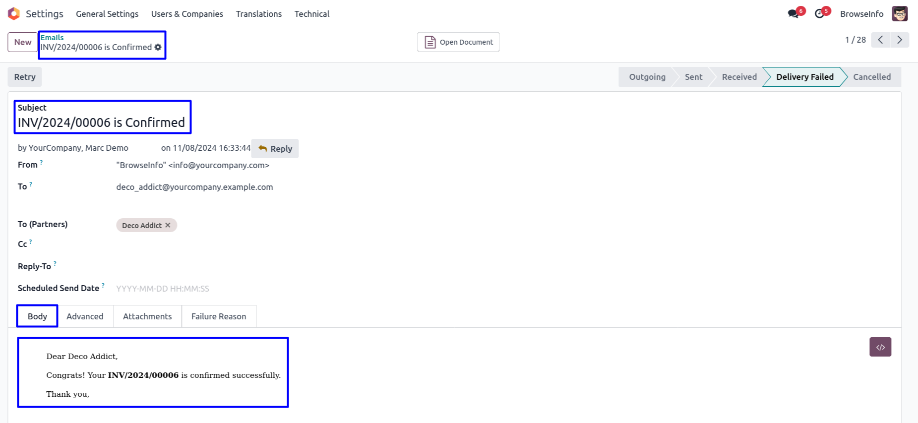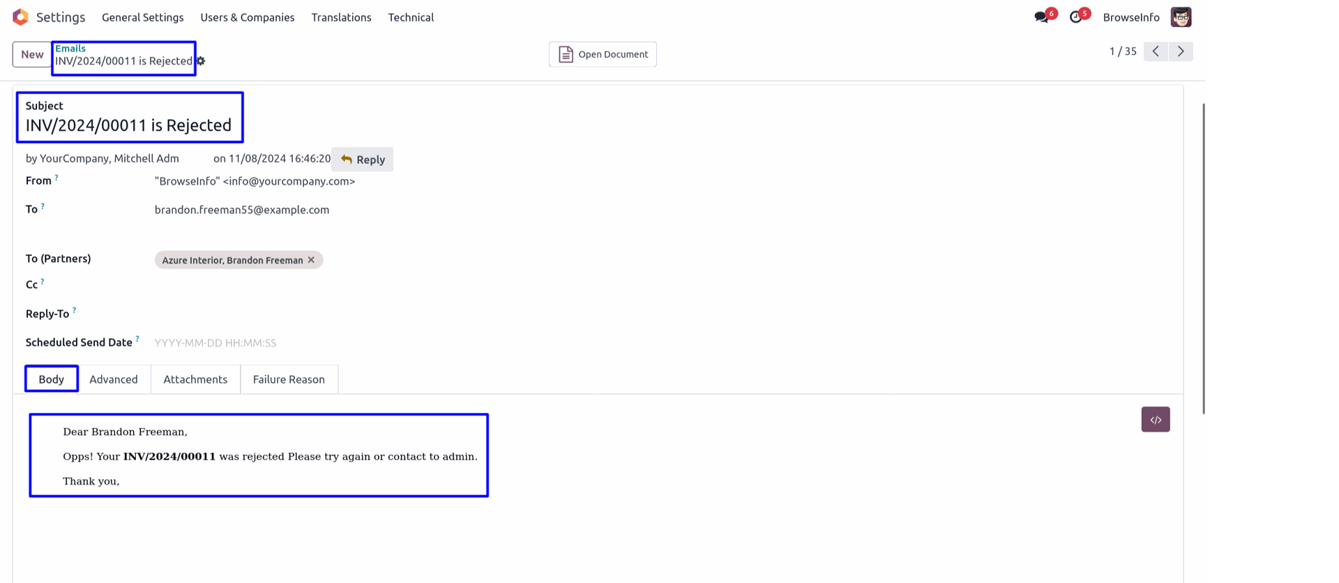 Email Notification for Rejected Customer Invoice