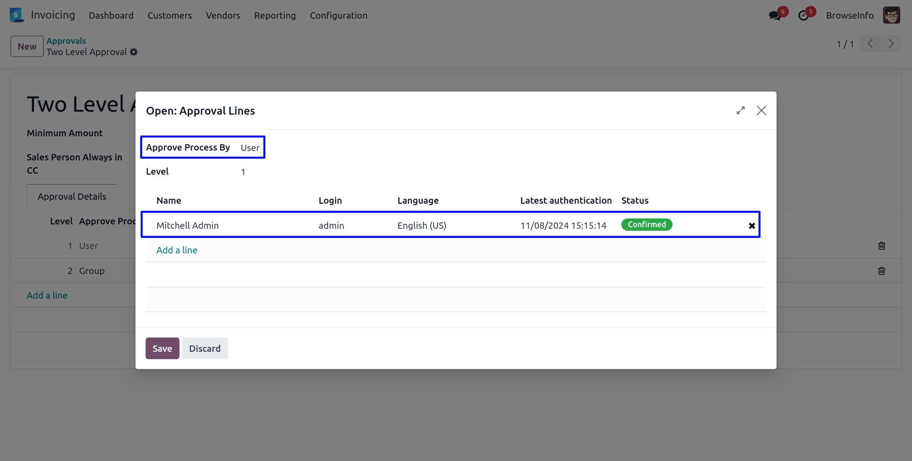 User can create or set multiple approvals for customer invoice and vendor bill.
