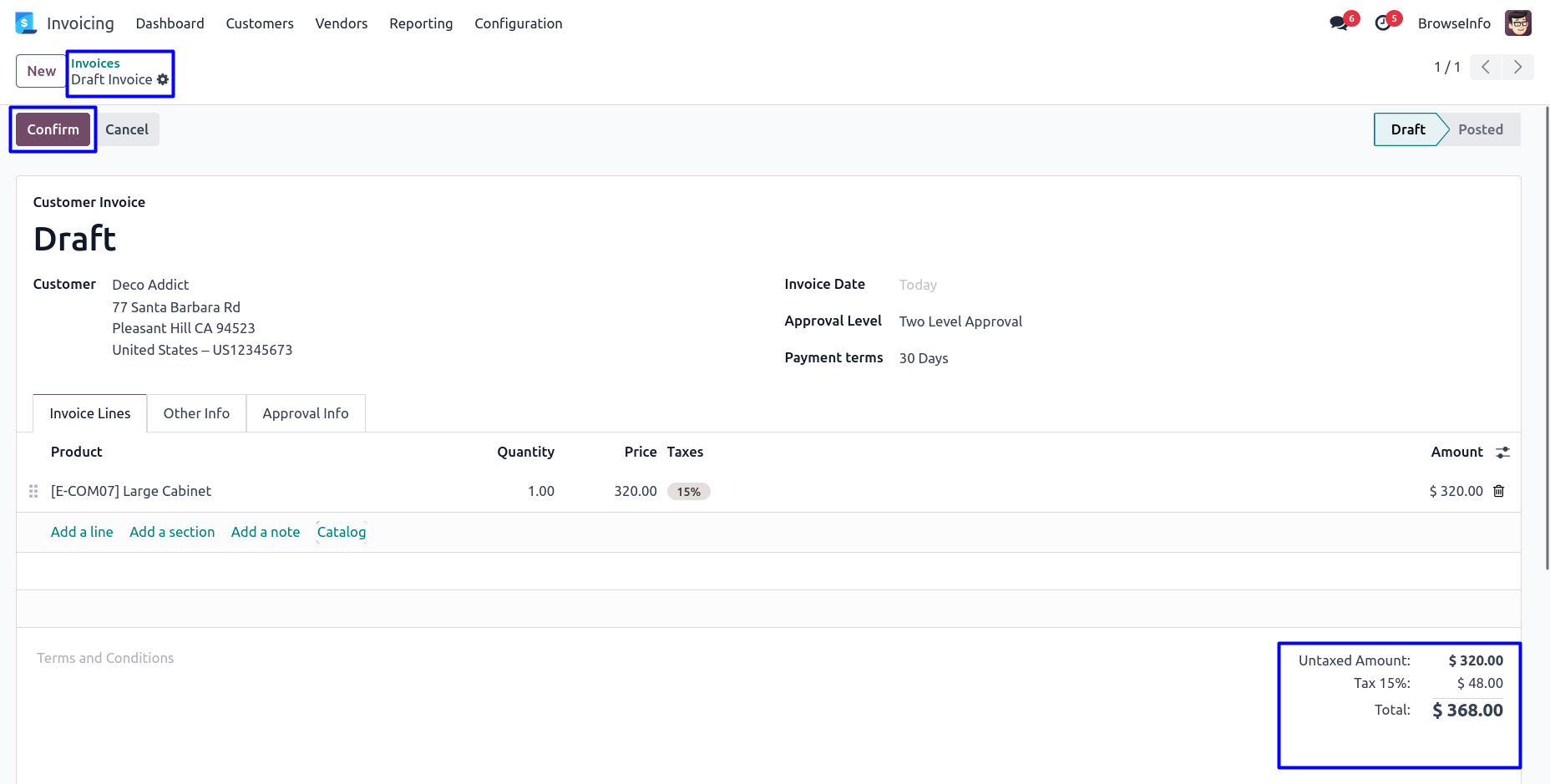User can click on 'CONFIRM' button in draft invoice.