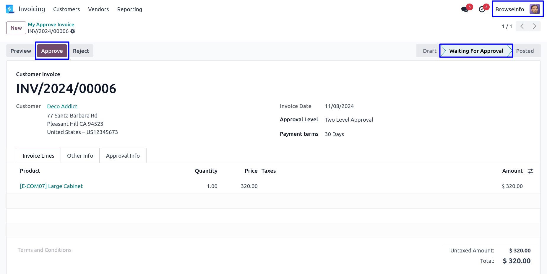 Approve Customer Invoice by First Approver