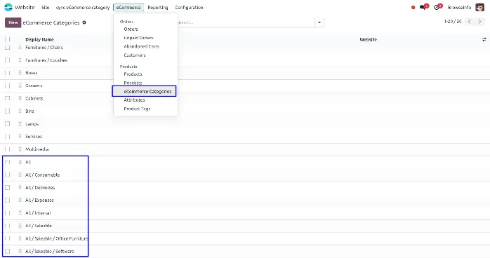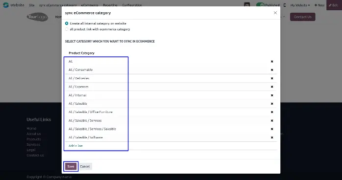 You can add or remove categories from the list and click save button so all selected categories added in the e-commerce category.