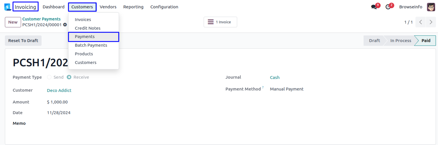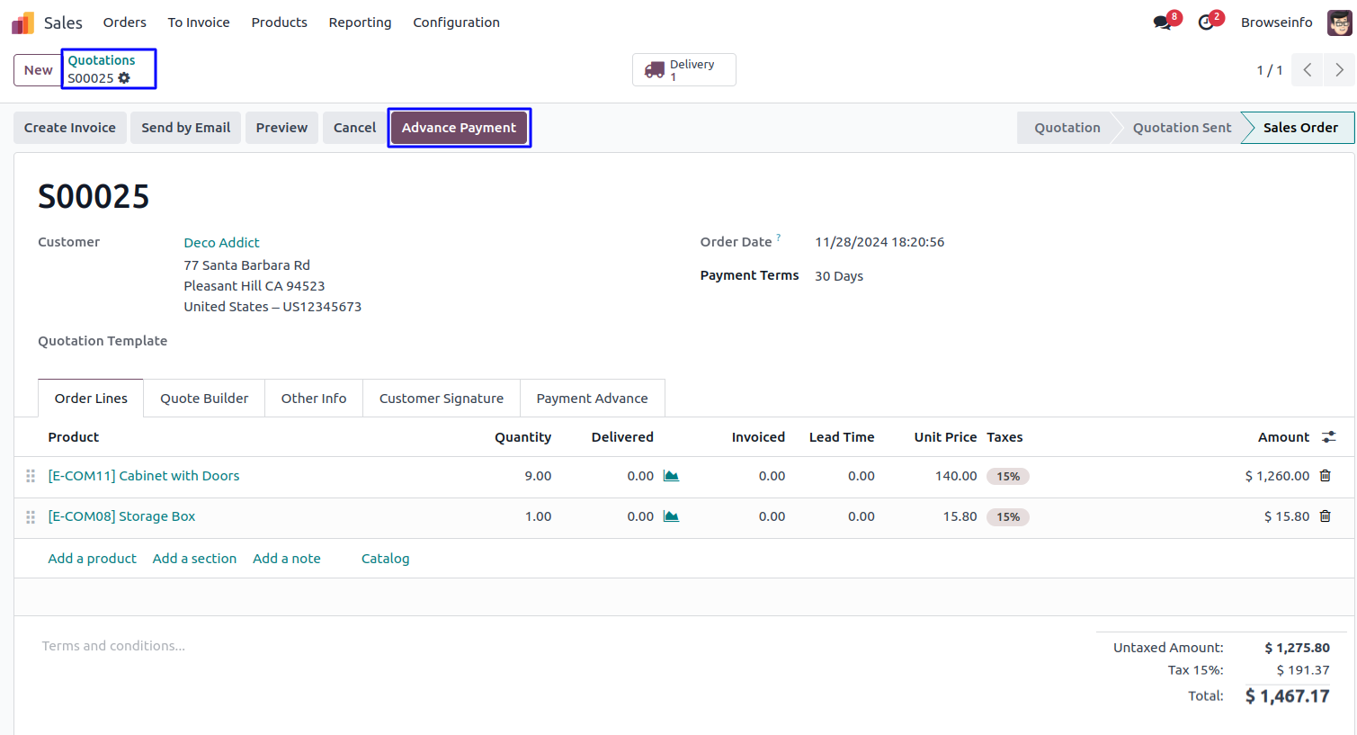 1) Make an Advance Payment from Sale Order