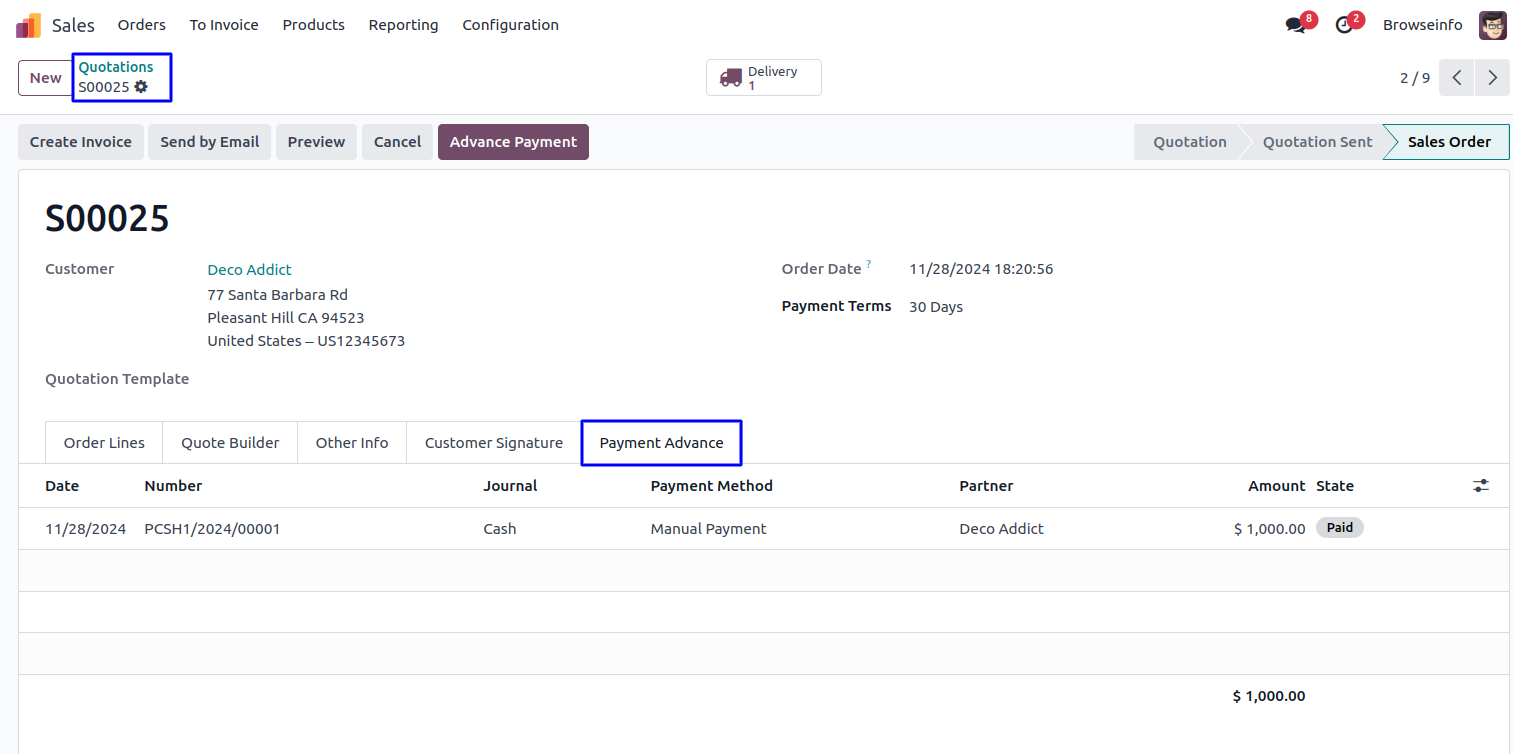 Advance Payment of Sale Order