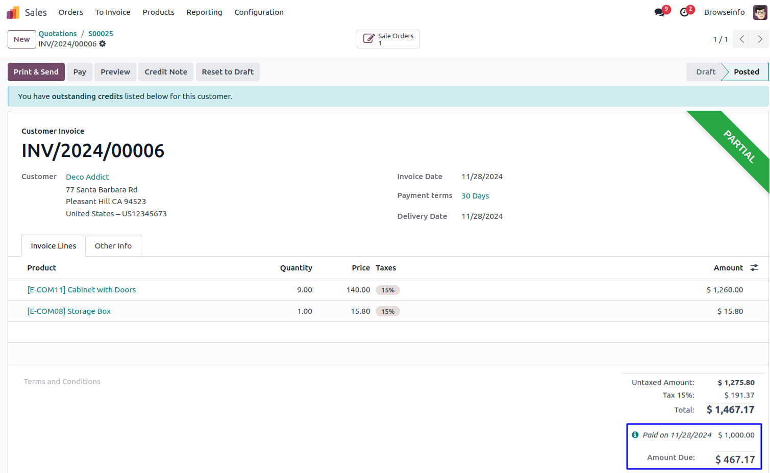 Advance Payment in Sale Order