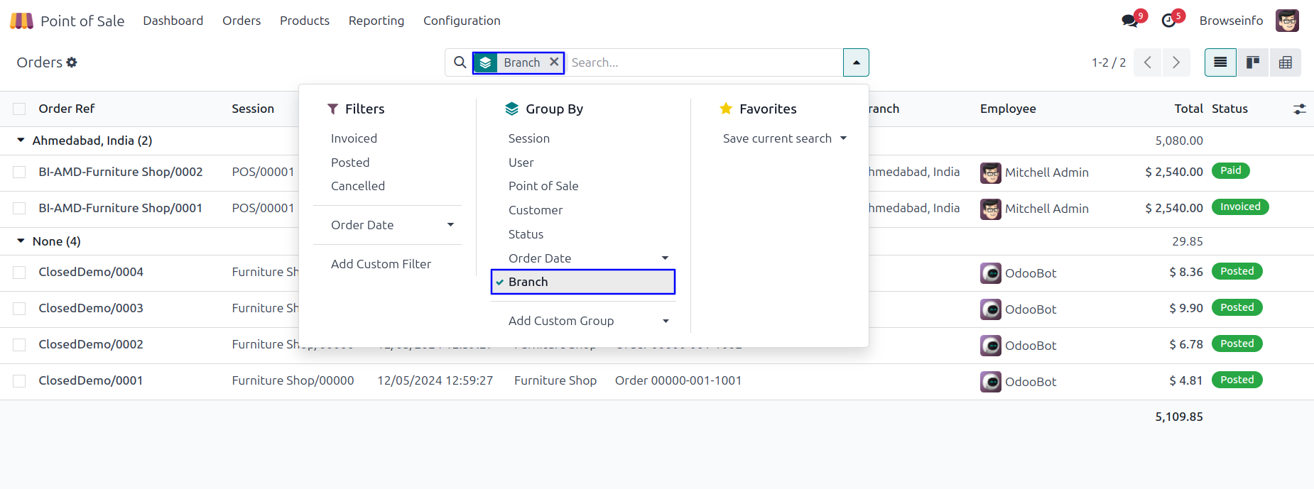 Branch functionality added to Sale Order, Purchase Order, Invoice/Billing,POS, Accounting, Warehouse and Products etc.