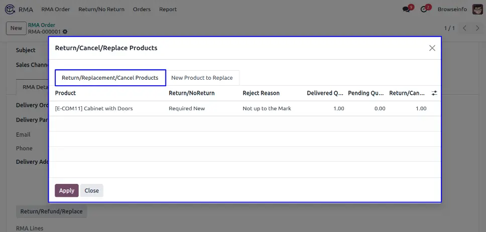 RMA Approval Return Merchandise Orders Odoo App simplifies the return process for customers, enabling them to manage product returns. This Odoo app allows you to create Return Merchandise Orders (RMA) in the back-end, including the entire return journey. Customers can initiate returns, replace products through RMA, request refunds via RMA, and easily navigate through distinct stages of the process. From returning products to replacing items and refunding orders, every aspect with attention to detail managed with clarity and ease, enhancing the overall customer experience and optimizing the back-end operations.