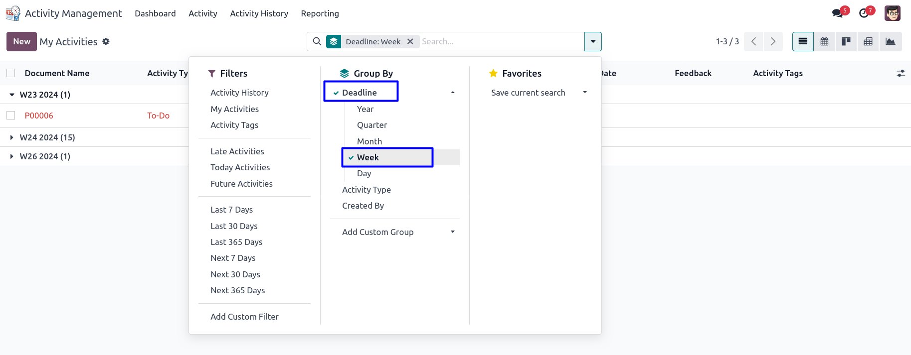 Activity Group By : Deadline