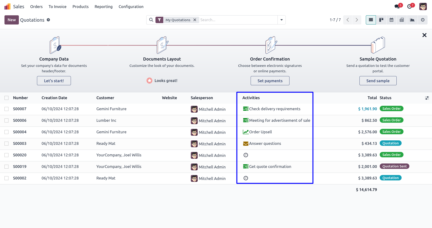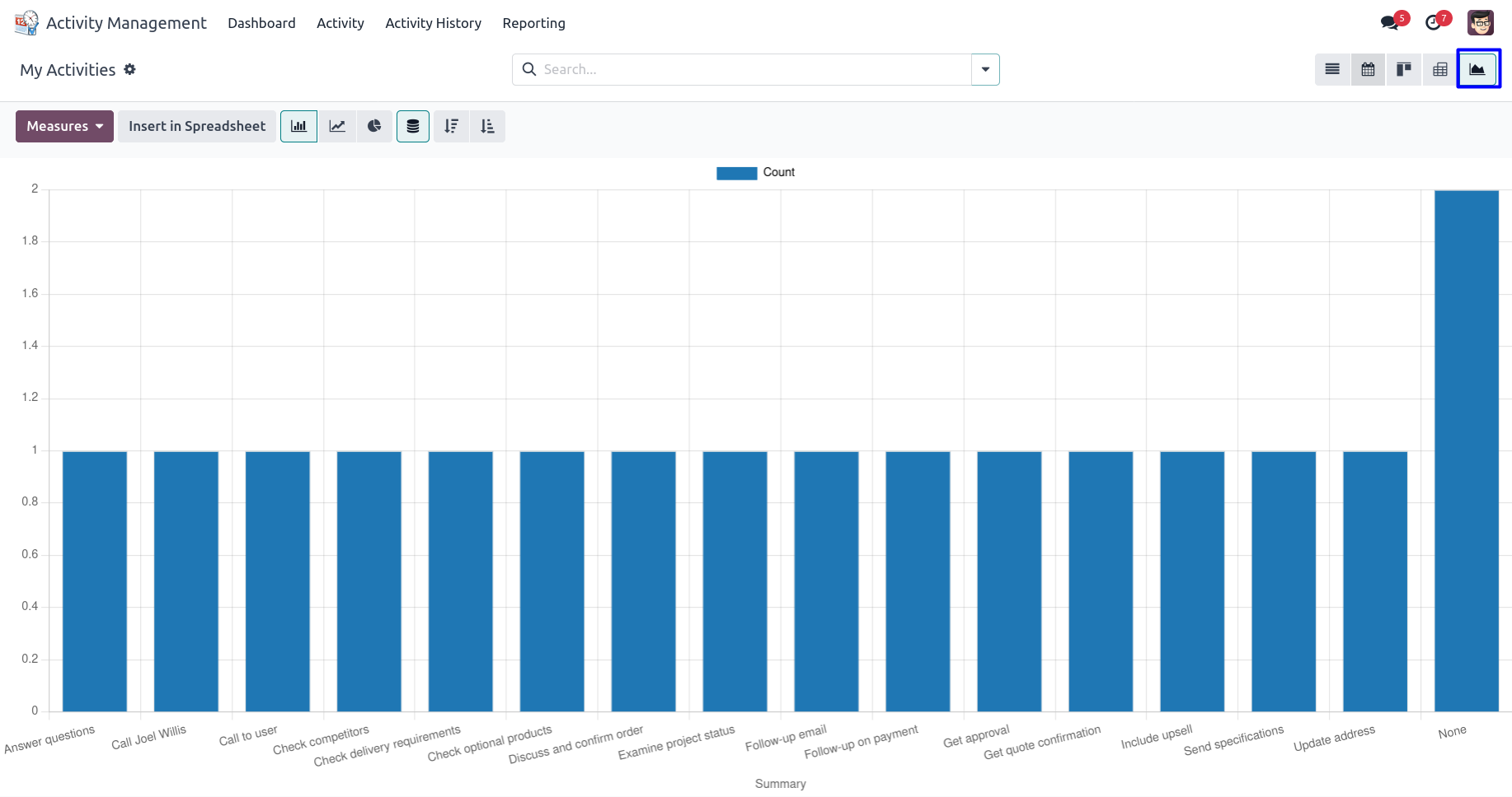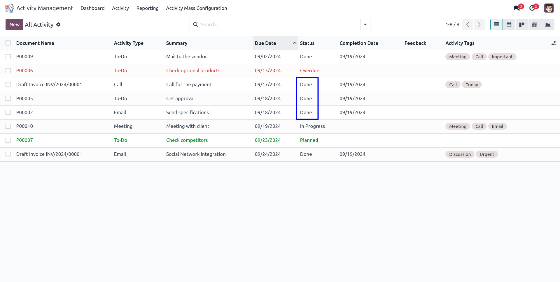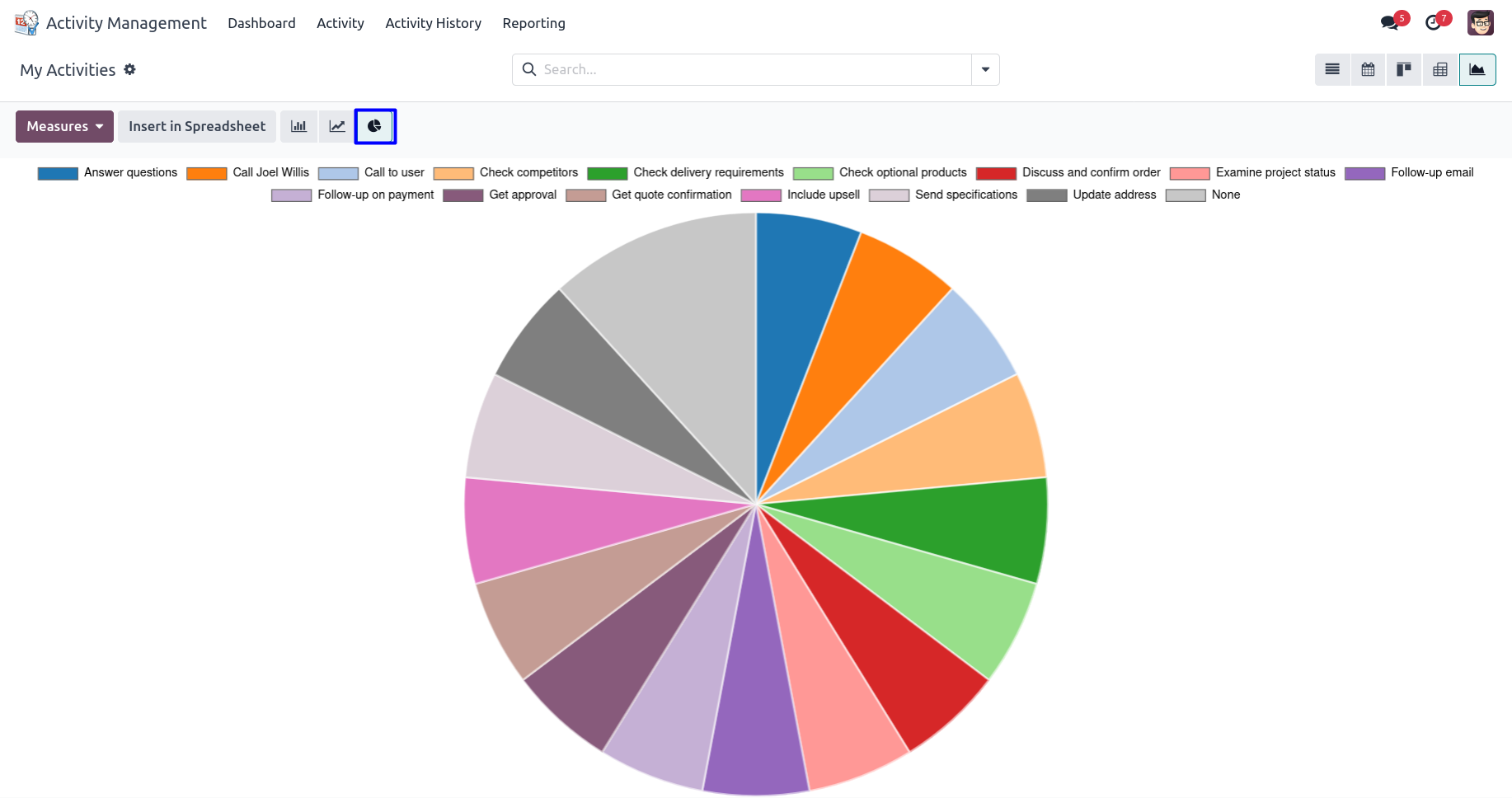 User can use different activity views like a list view, kanban view, calendar view etc.
