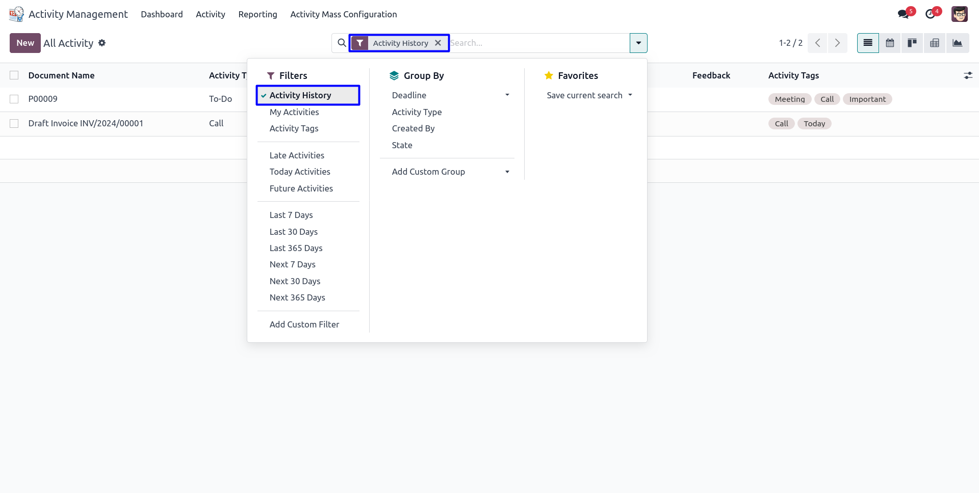 Activity Filter By : Activity History