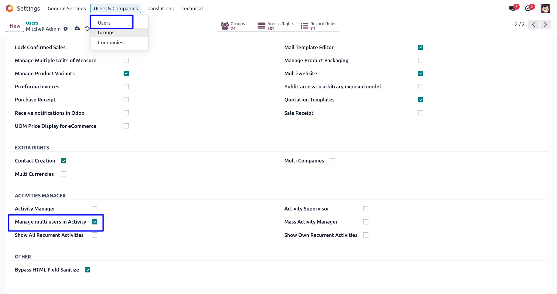 Users with "Manage multi users in Activity" only can create and schedule activity for multiple users at a time.