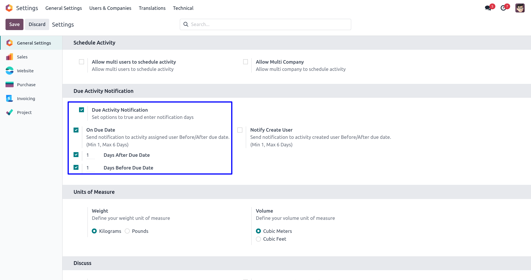 User can get due activity notification on due date and also select days before due days and days after due days with set days.