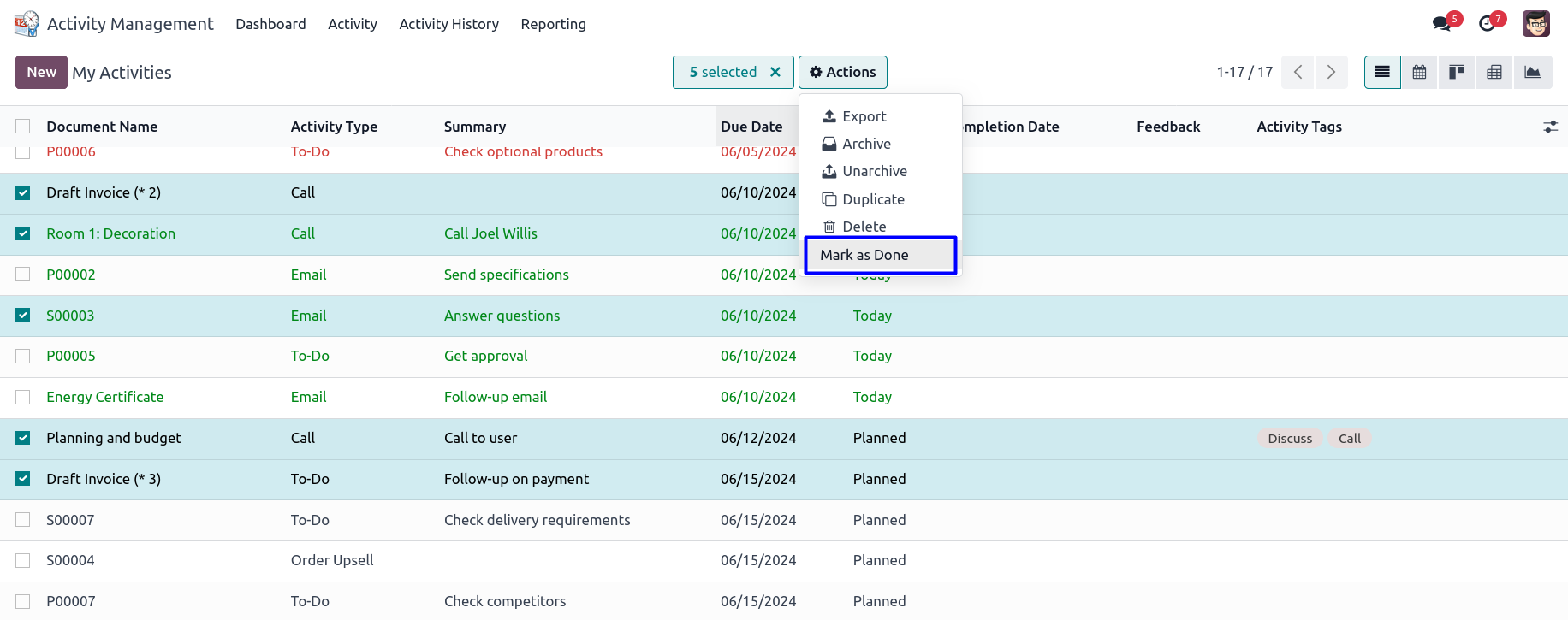 11) Mark As Done Activities from Tree View