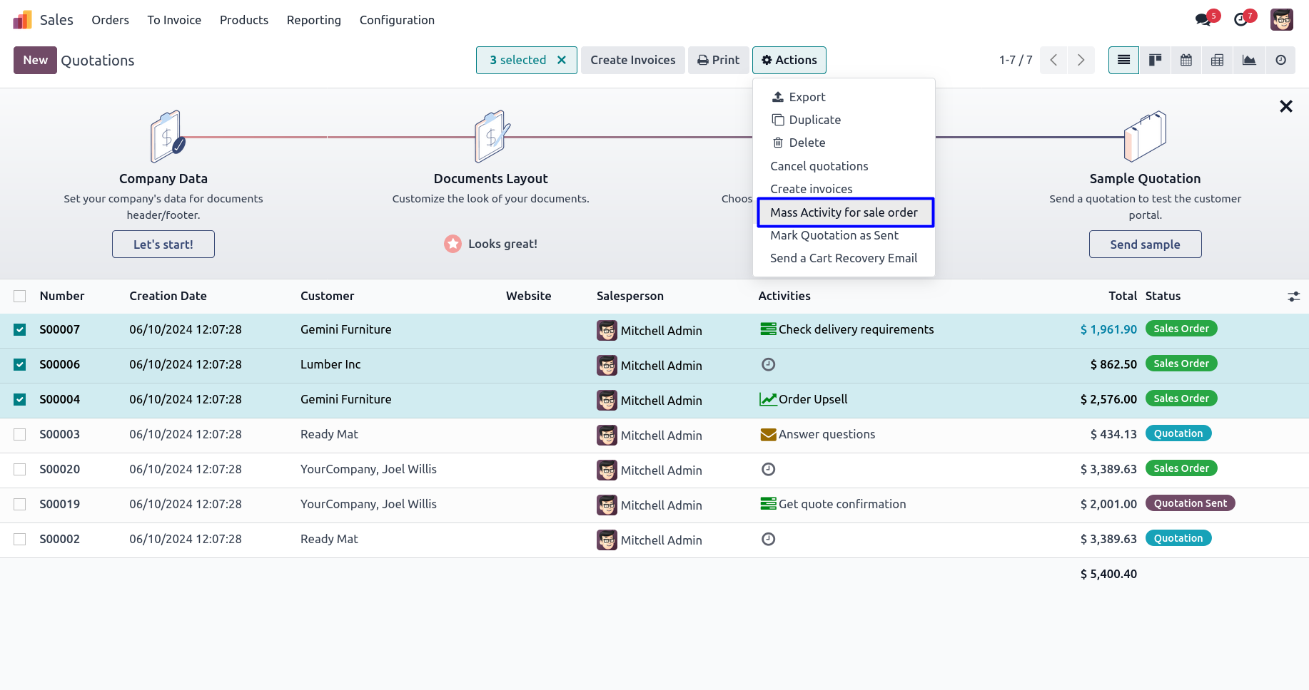 Mass Activity for Sale Order Action