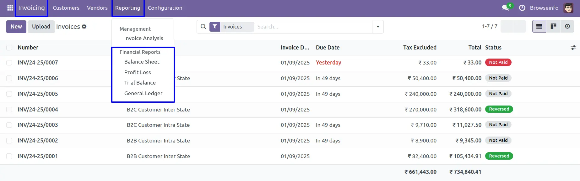 Balance sheet, Profit Loss, Trial Balance, General Ledger.