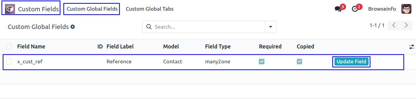 User can see updated custom global fields.