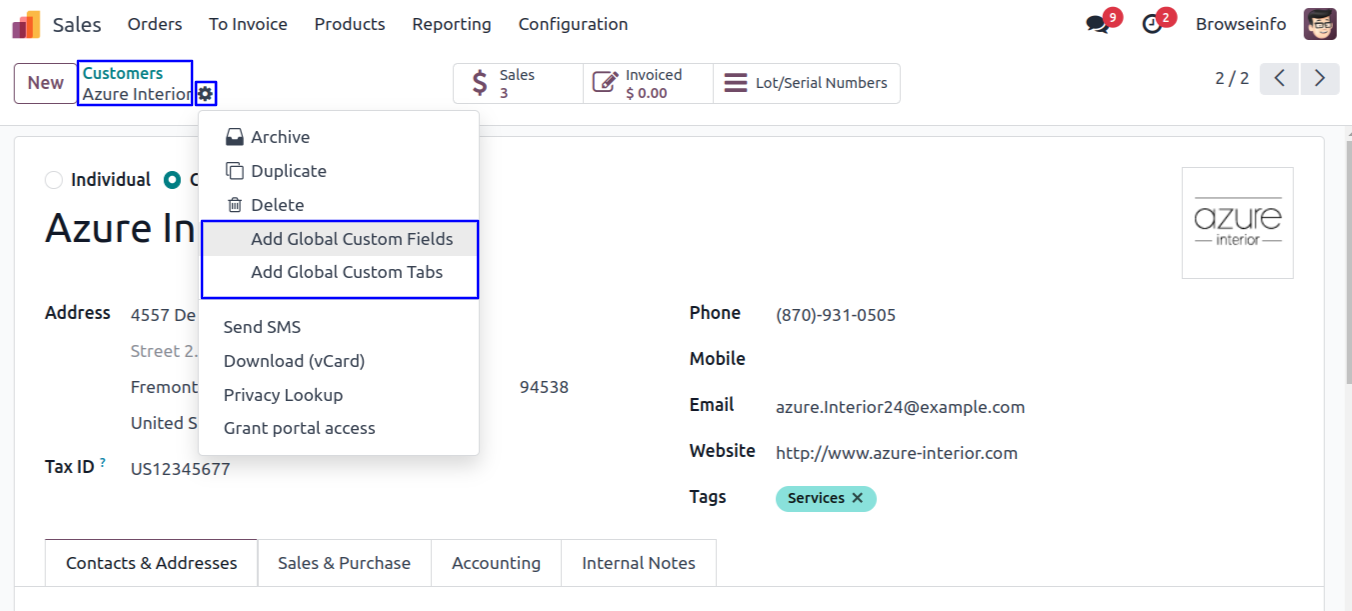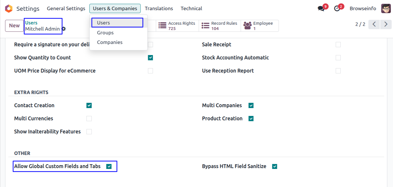 Authorized user only can add custom fields and tabs.