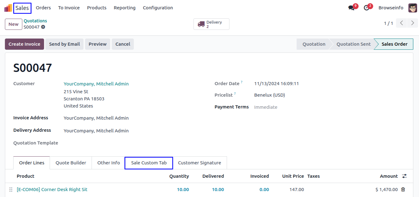 User can see added tabs on selected position.