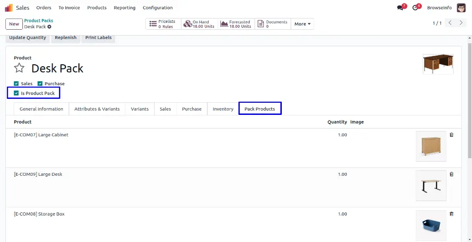 User can view product bundle pack using "Is Product Pack" filter on product.