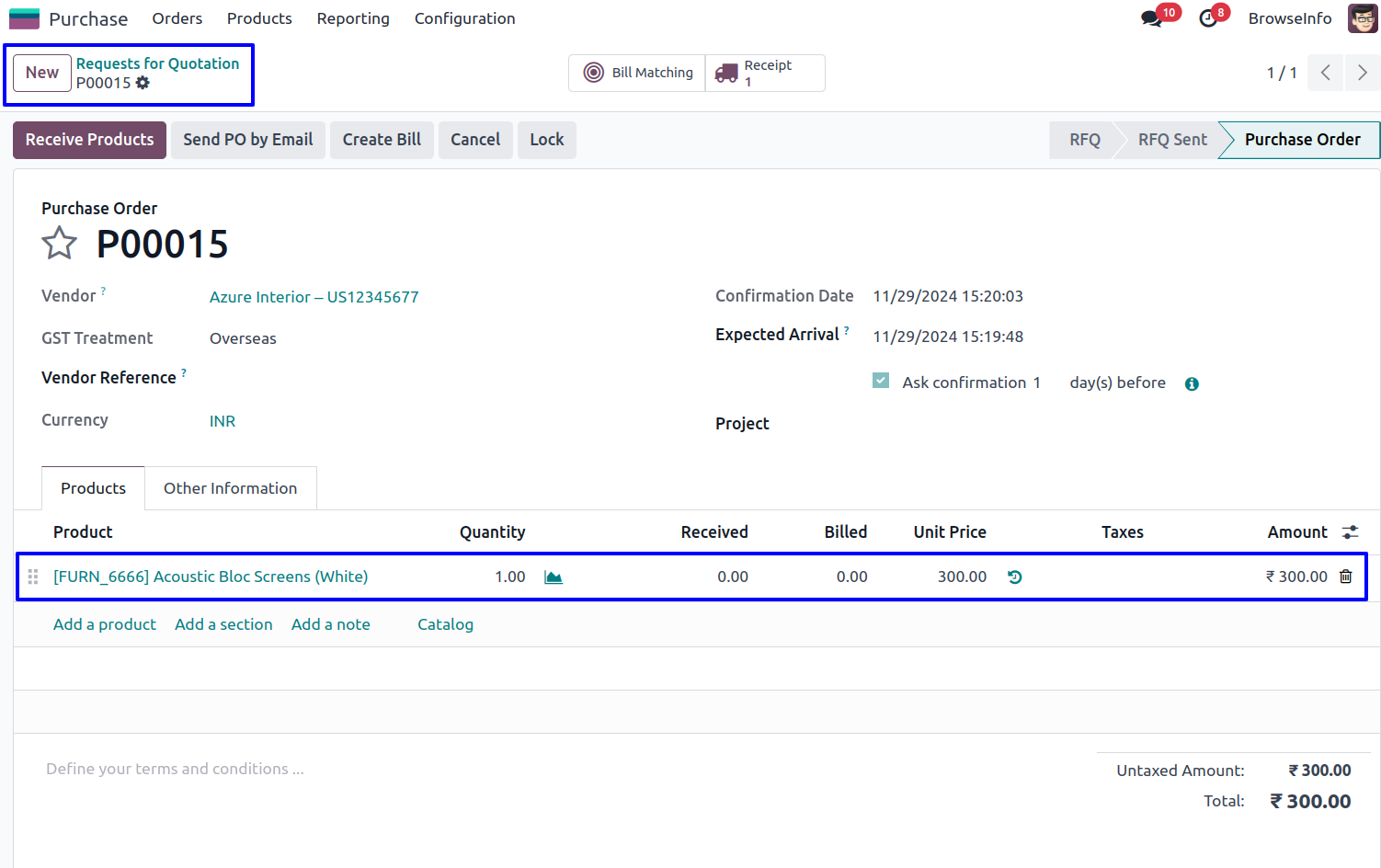 User can see created purchase order with product bundle pack.