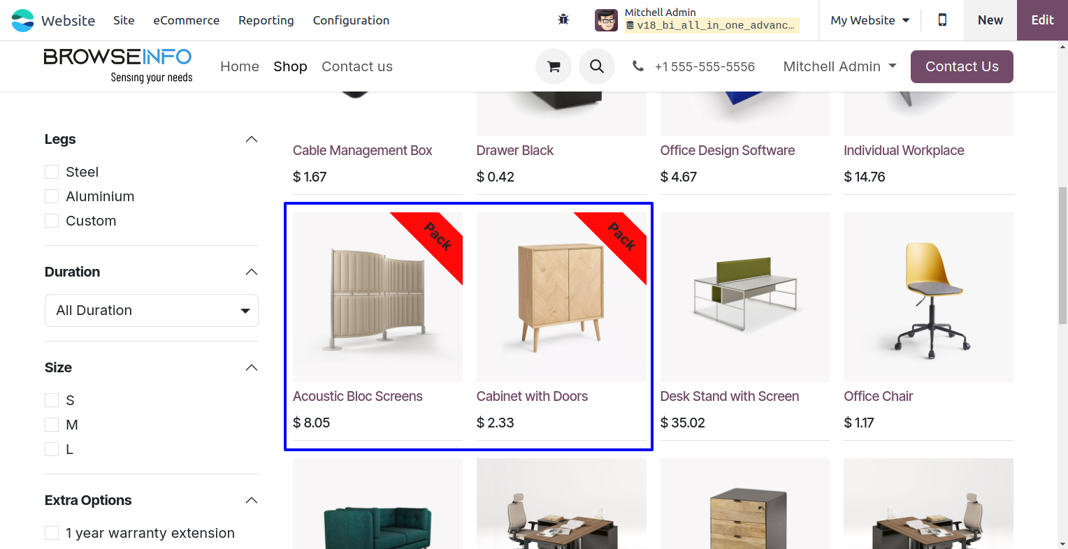 Product Pack on Website View