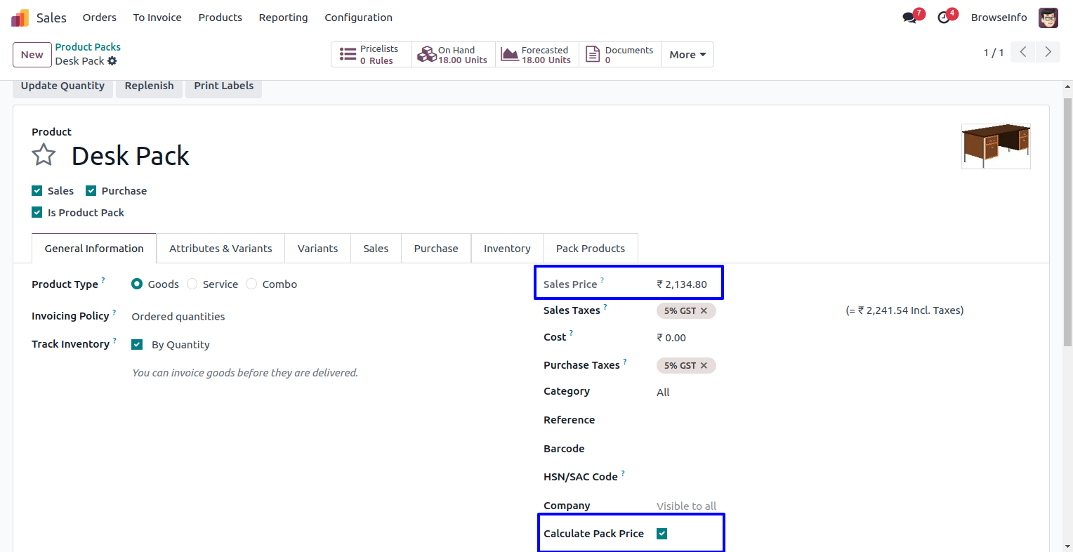 Product Pack Price