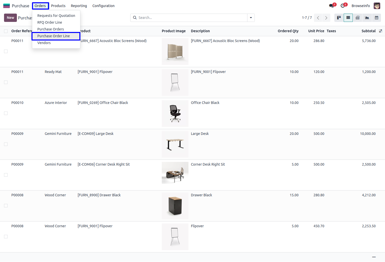 List View of Purchase Order Line