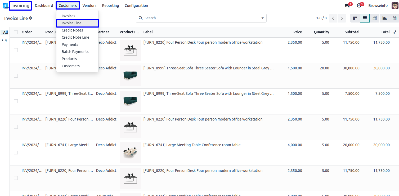 List View of Invoice Line