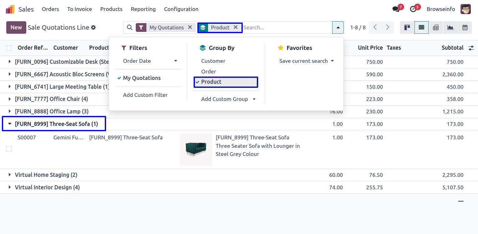 Sale Quotations Line Group By 'Product'