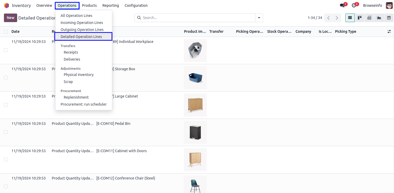 Goto Inventory -> Operations -> Detailed Operation Lines menu in that you can see detailed operation lines in list view.