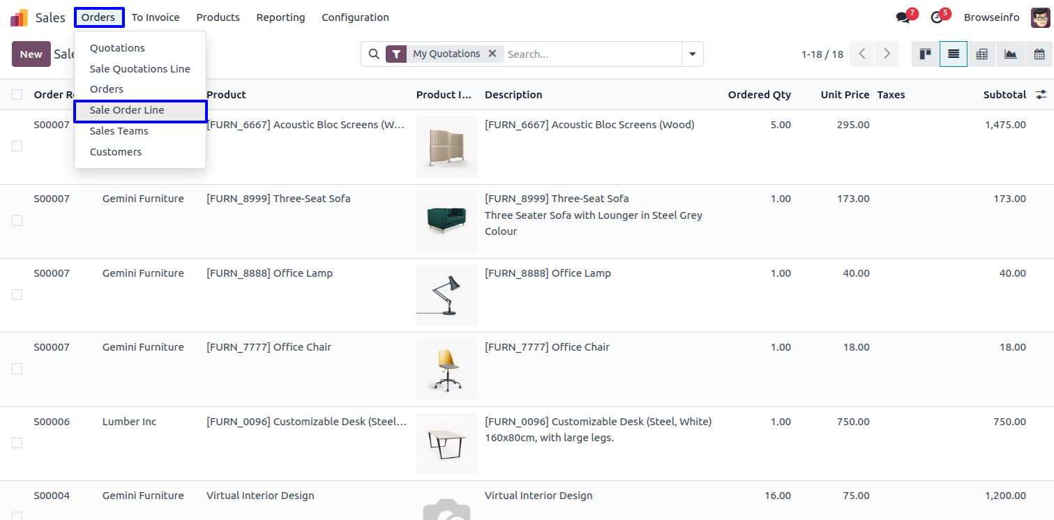 List View of Sale Order Line