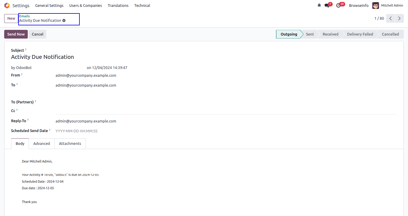 Due Activity Notification On Due Date