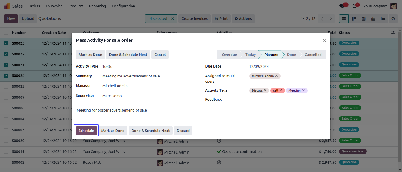 Schedule Mass Activity for Sale Order