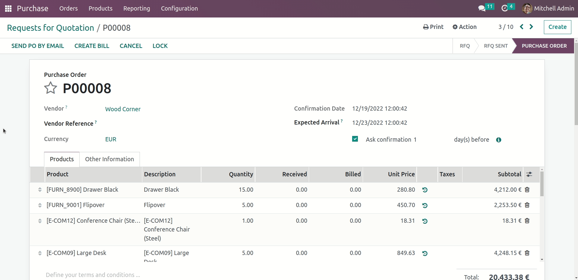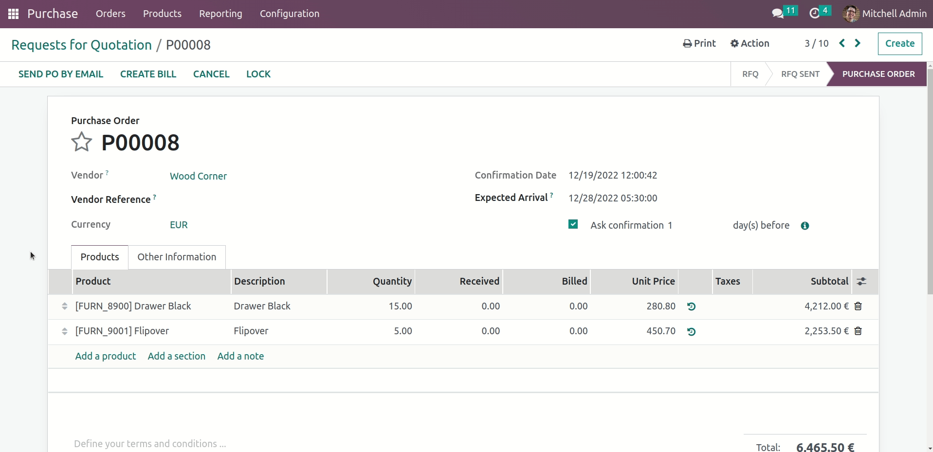 In default odoo if user add more lines then list view will expands and there is no fix size for list view in form view, After installing module user can see sticky list view inside form view and user can scroll till end of list view.